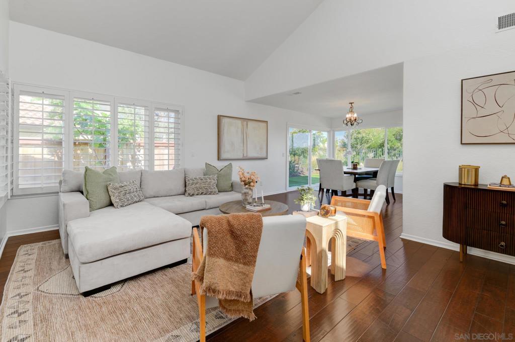 Striking hilltop location in the Terraces at Cantebria with panoramic hillside and mountain views, this beautifully upgraded home offers the perfect blend of comfort, style, and functionality. Thoughtfully renovated inside and out, the property features a newer roof, owned solar, fresh interior and exterior paint, and a fully reimagined outdoor setting with paver driveway and walkways, new landscaping, turf, irrigation, and landscape lighting. The backyard is a true retreat, complete with a stamped concrete patio, pergola, fire pit, putting green, planter beds, and a modern Pebble Tech pool and spa with river rock accents—ideal for entertaining. Located just a few minutes to the beach, this home is true California living at it's finest. Inside, the home is bright and inviting with gorgeous hardwood floors, designer paint, shutters, recessed lighting, dual pane windows and sliders, central air, and a whole house fan. The updated kitchen is complemented by upgraded appliances, while fireplaces in both the family room and primary suite add warmth and character. The recently renovated primary suite features a spa-like bathroom with soaking tub, custom shower, new dual vanity, all-new floor and wall tile, updated lighting and plumbing fixtures, and custom California Closets. Additional highlights include a One Water system, upgraded insulation, newer water heater, epoxy garage floors, and a spacious 3-car garage. Residents enjoy access to community pool, spa, and tennis courts, all just moments from shopping, dining, and everyday conveniences in the heart of Encinitas.